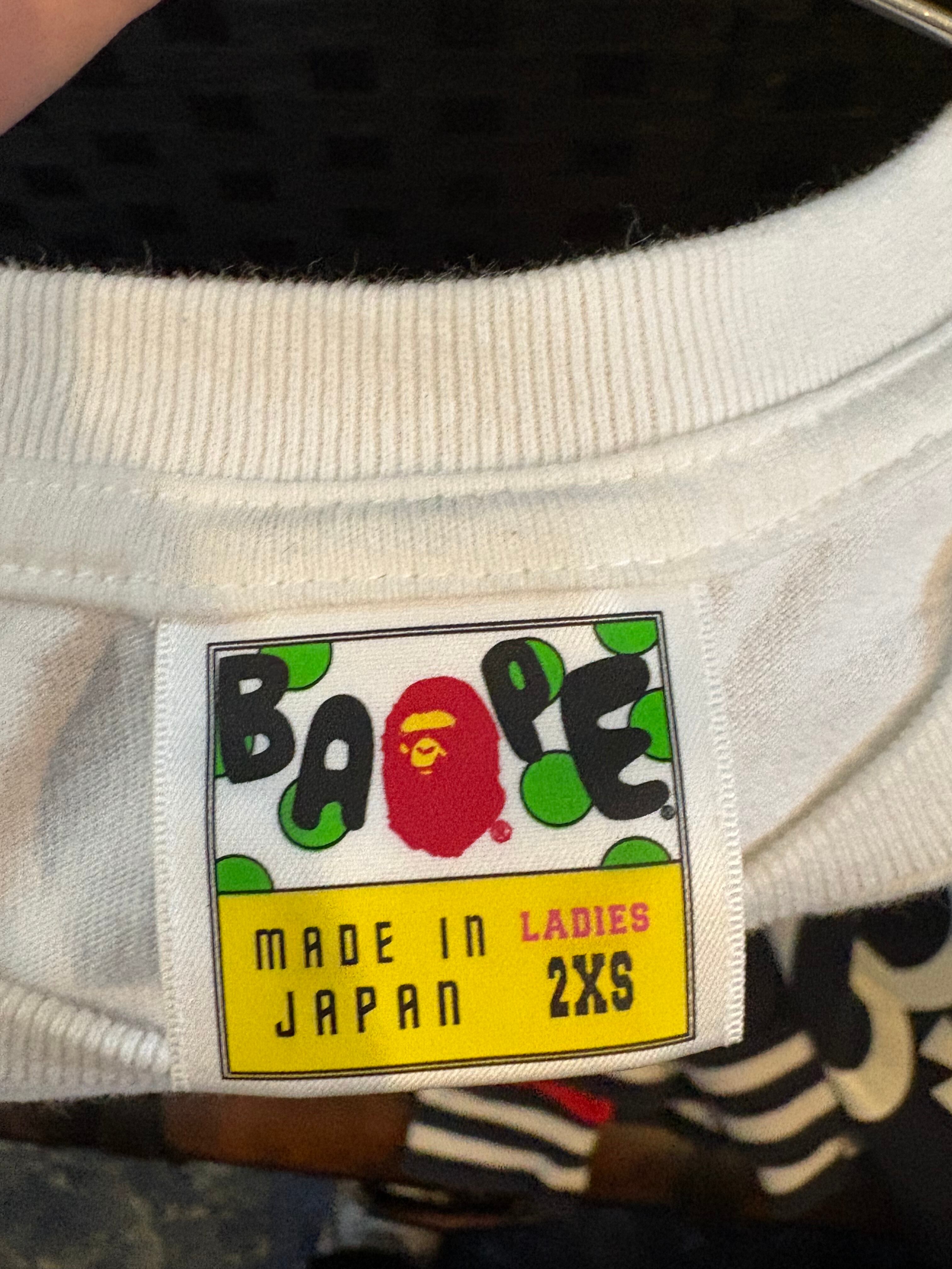 グラフィックプリントのA BATHING APE Tシャツ、ホワイト、2XSサイズ。