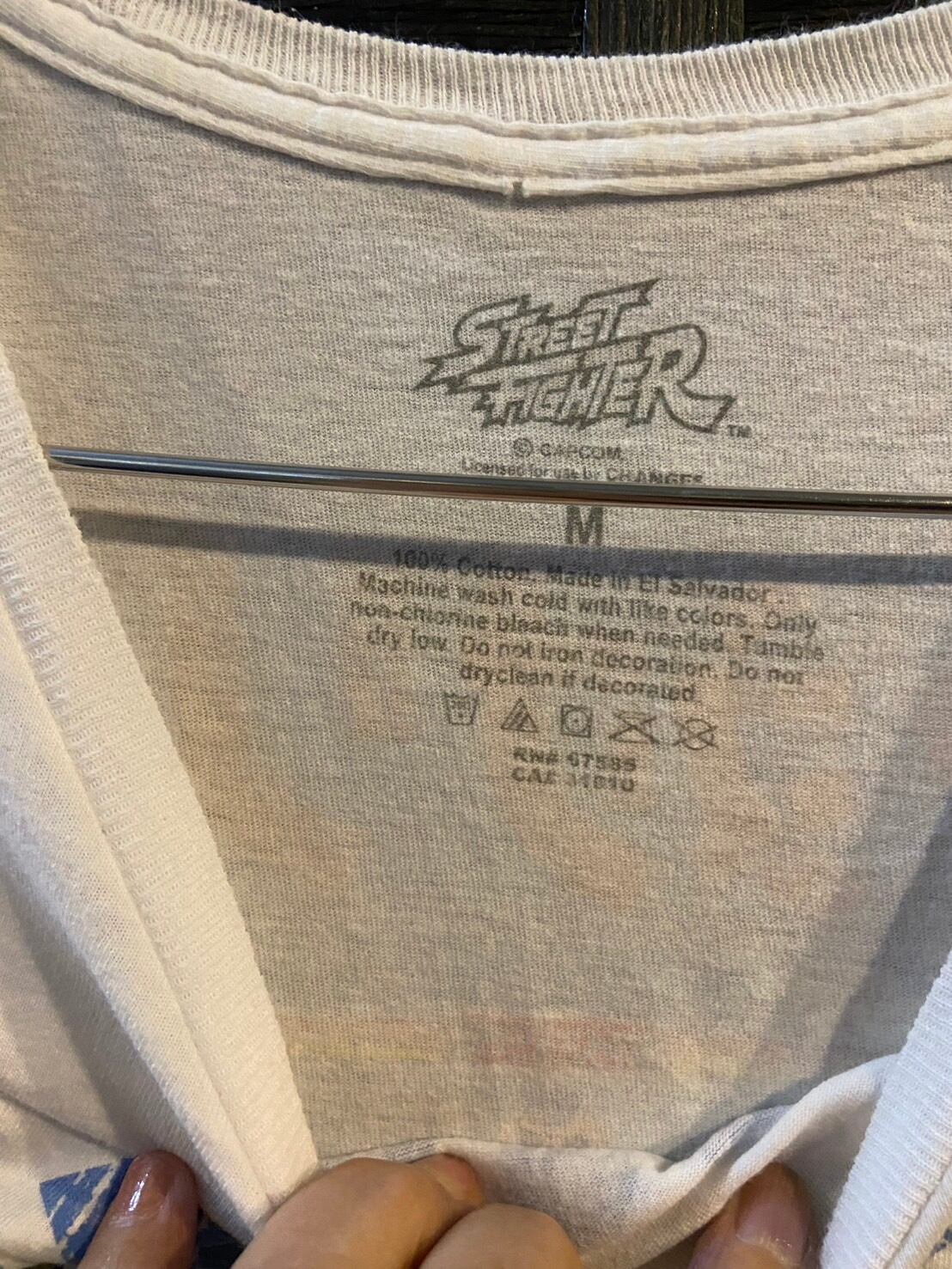 ストリートファイターIIの1991年デザインTシャツ、ケンとリュウのグラフィックが特徴。