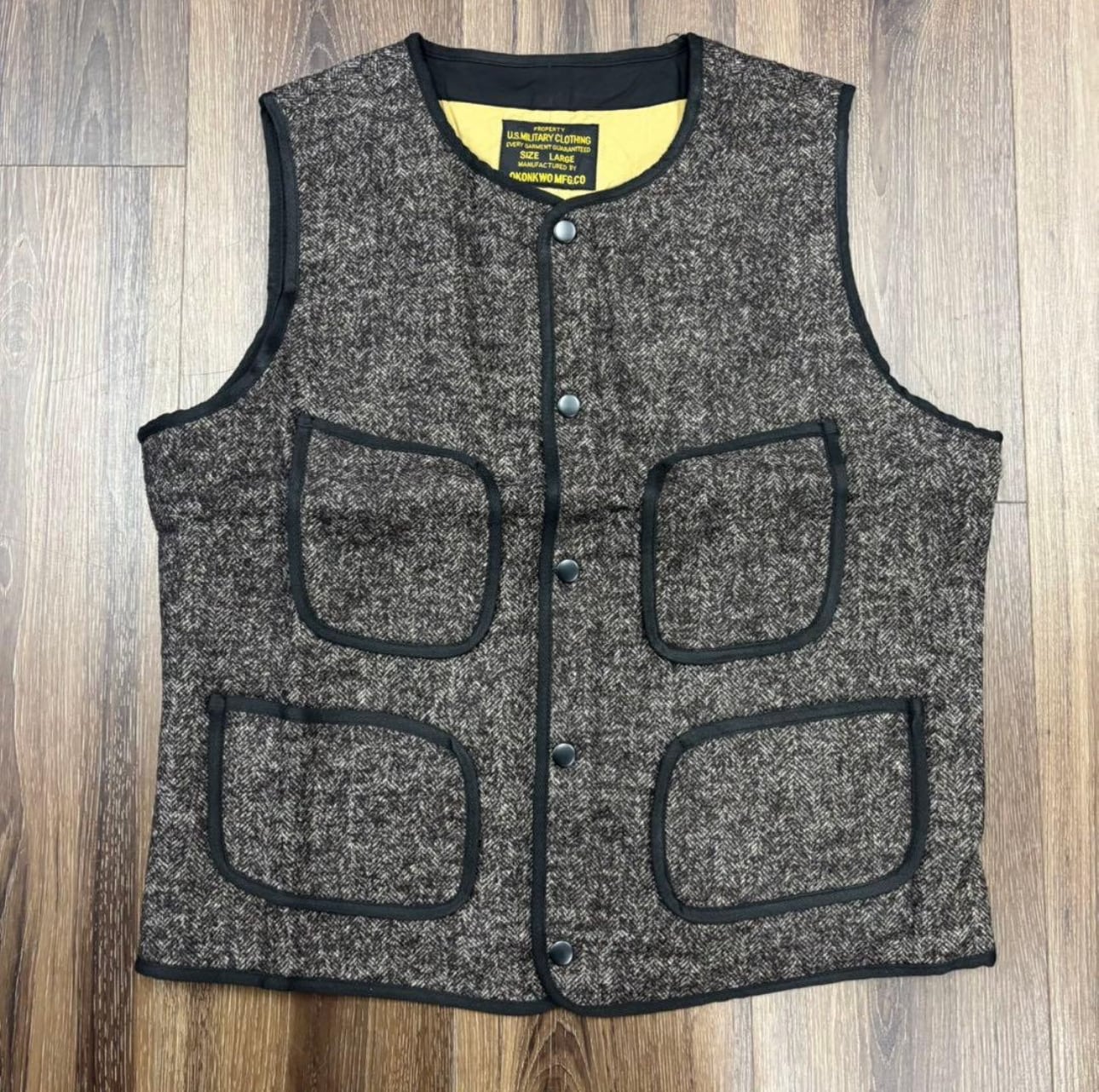 〆 オコンクァ okonkwo ビーチクロス ジャケット 胡麻塩 ウール ベスト ブラウン
