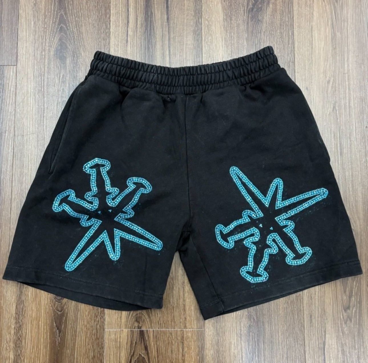 〆 unkown ビーズ ラインストーン スウェット ハーフパンツ