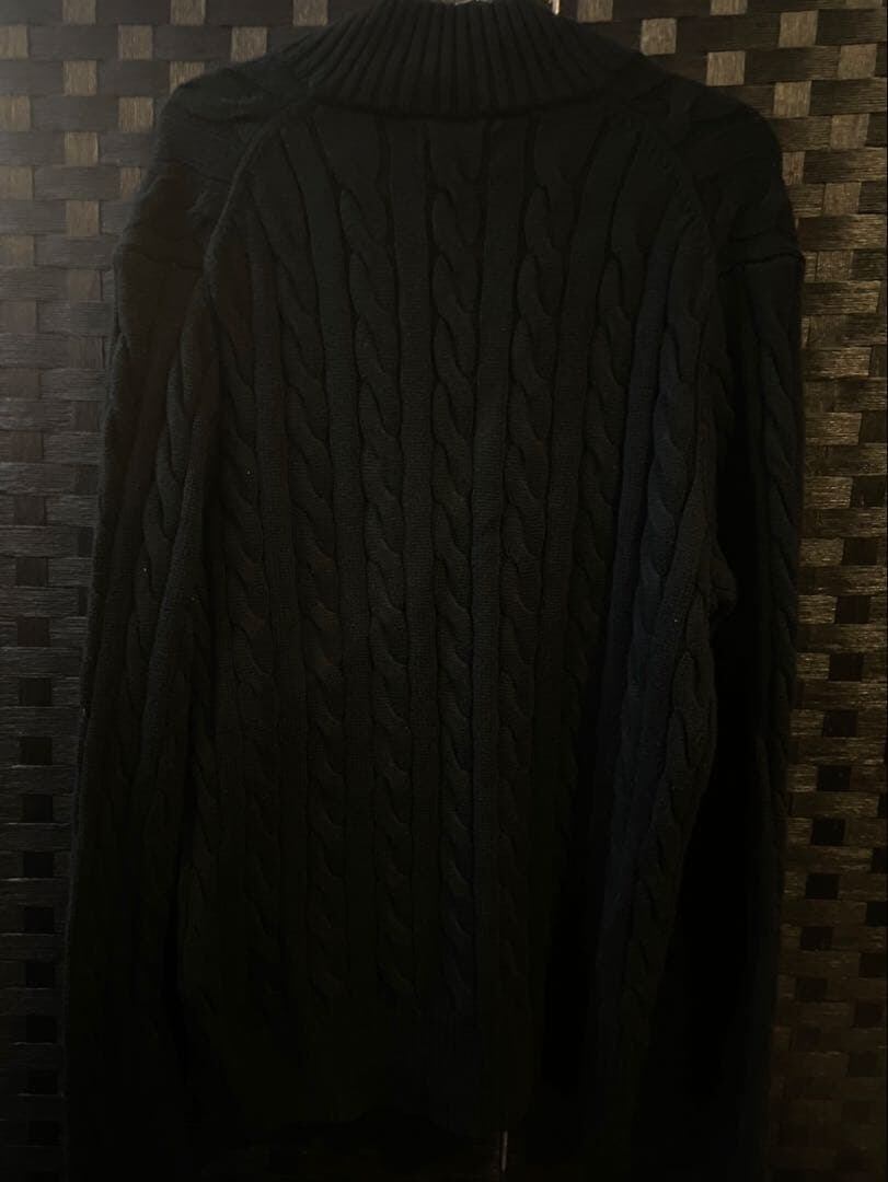 Polo Ralph Lauren の定番ニット、ケーブルニット コットン クォータージップ セーター(ブラック)