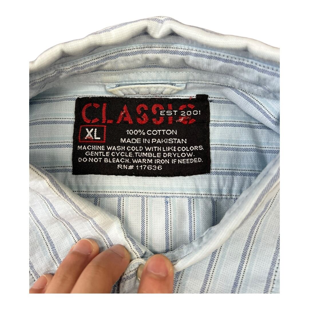 CLASSIC クラシック ストライプシャツ 長袖 青 水色 綿100 古着