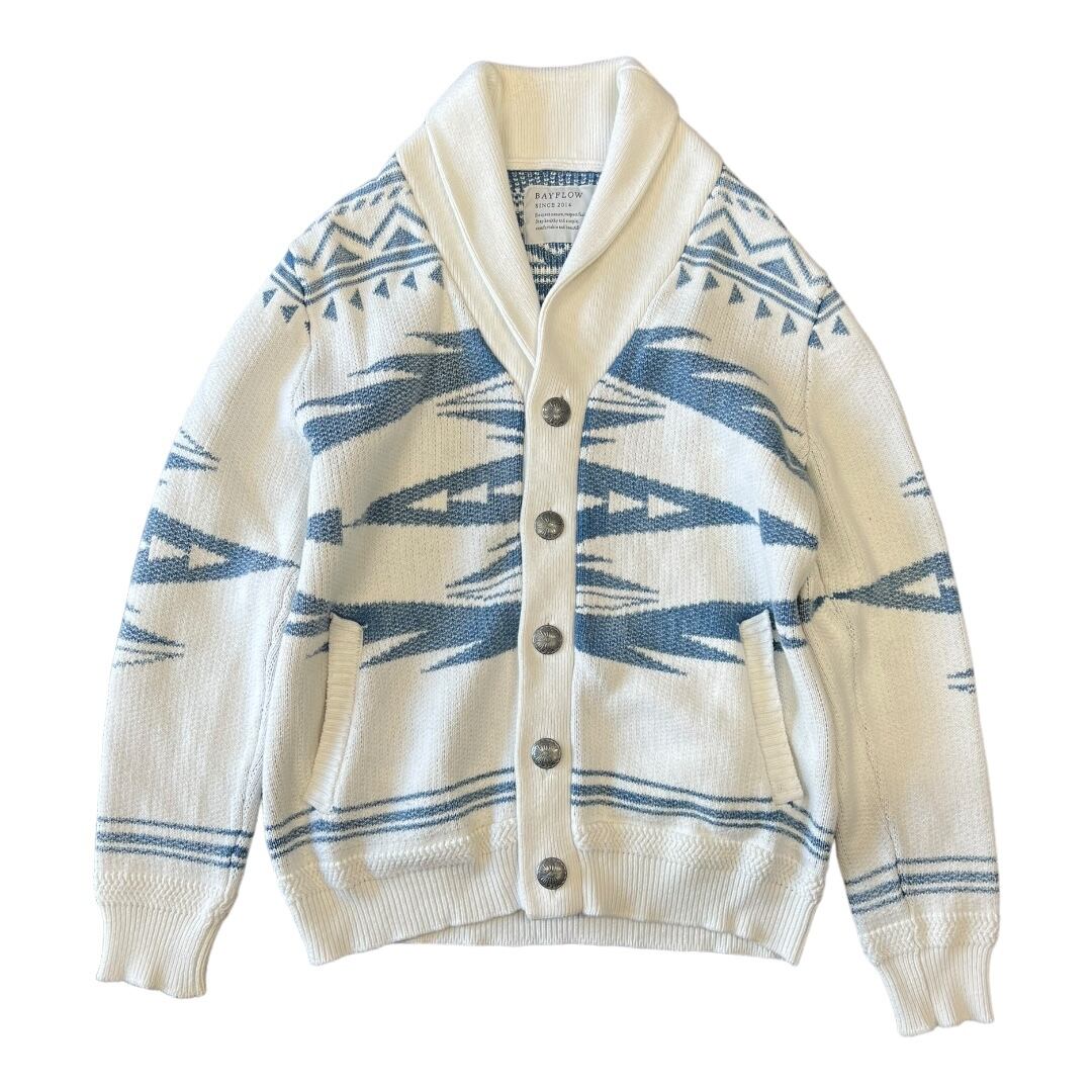 BAYFLOW ベイフロー ニットカーディガン 長袖 柄 綿100 開襟 ボタン